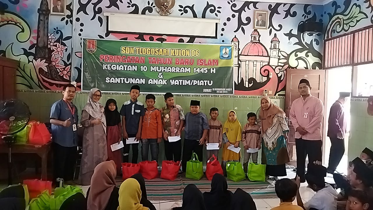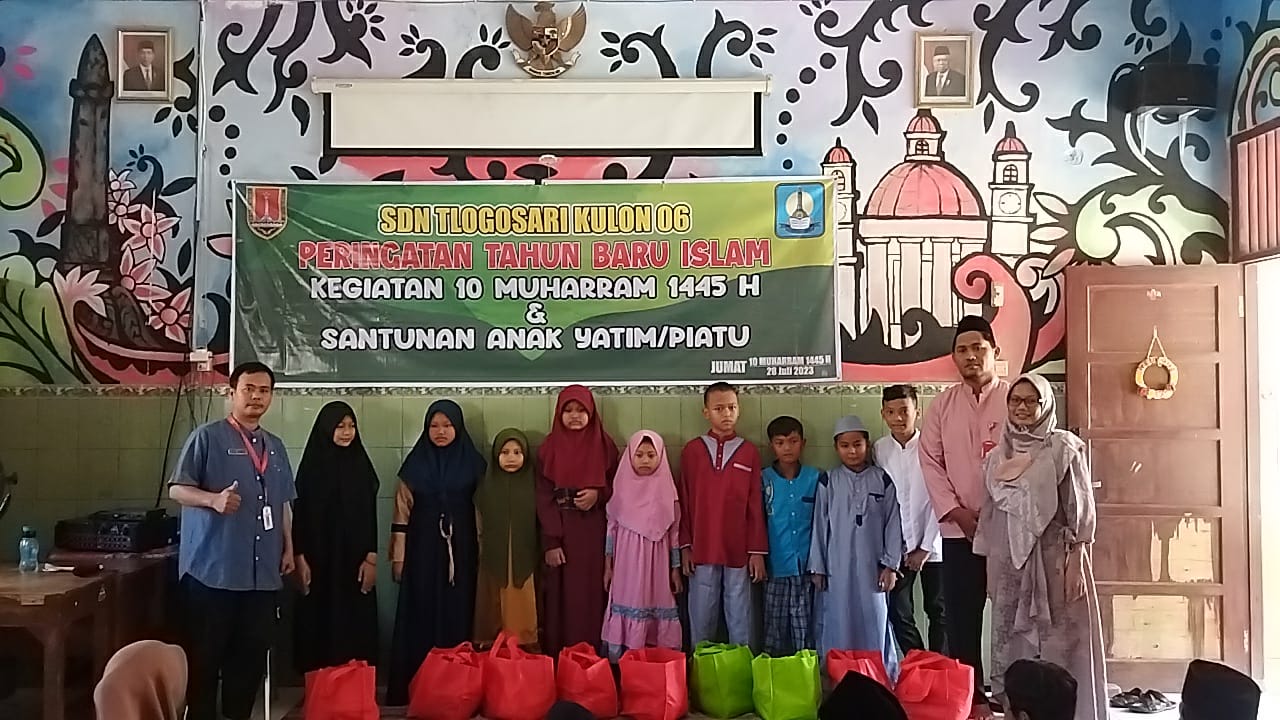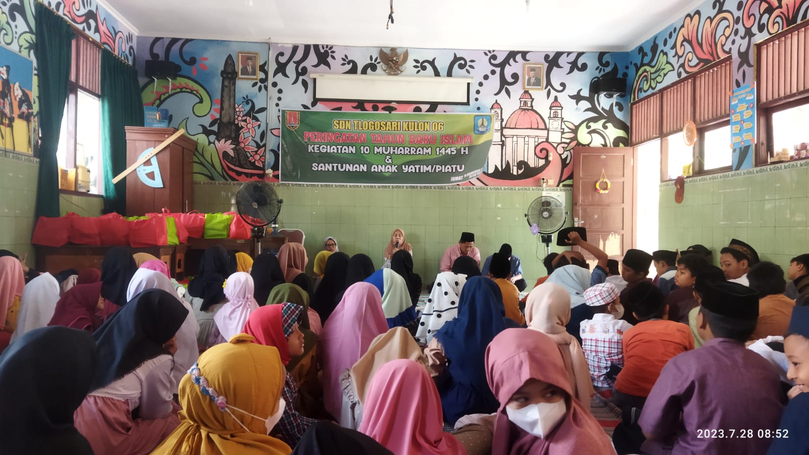 Alhamdulillah... Kegiatan memperingati 10 Muharam Tahun Baru Islam 1445 H terlaksana dengan khidmat. Menjujung karakter siswa siswi SDN Tlogosari Kulon 06 untuk saling membantu, berempati terhadap kawannya telah terwujudkan dengan adanya kumpulan sembako dan uang sodaqoh yang dapat dibagikan kepada siswa siswi anak yatim piatu / yatim / piatu serta yang kurang mampu. Mudah - mudahan di tahun yang akan datang rezeki kesehatan , umur panjang , dan kesempatan berbagi serta waktu kita dapat melaksanakannya lagi kegiatan sosial ini di bulan Muharam bersama siswa siswi SDN Tlogosari Kulon 06 .